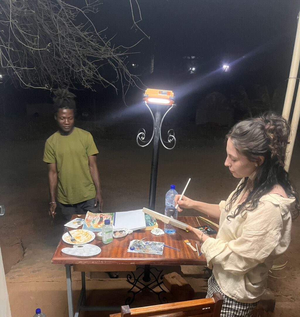 This year as well, we welcome young artists to the Opera Village for a short research and working stay. Our guests were Liz and Melina, two students from the State Academy of Fine Arts in Karlsruhe. During their stay, they were accompanied by the Burkinabè artist Marcel Ahondo, who supported the exchange on site and provided insights into the local art scene.